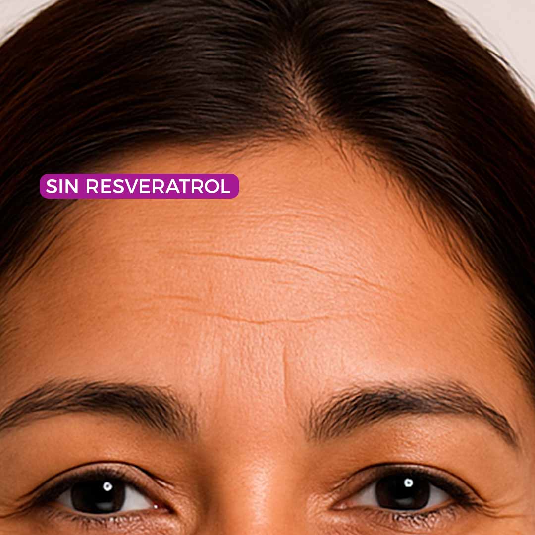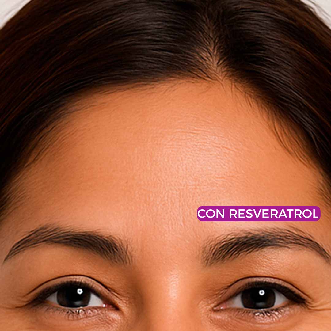 El resveratrol y la biotina ayudan a proteger la piel del sol, la luz azul y la contaminación, formando una barrera natural que previene manchas y signos de envejecimiento.