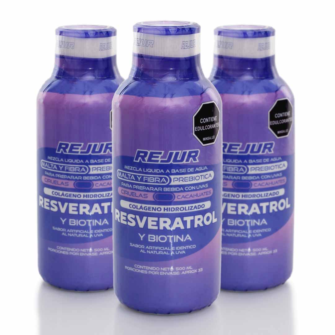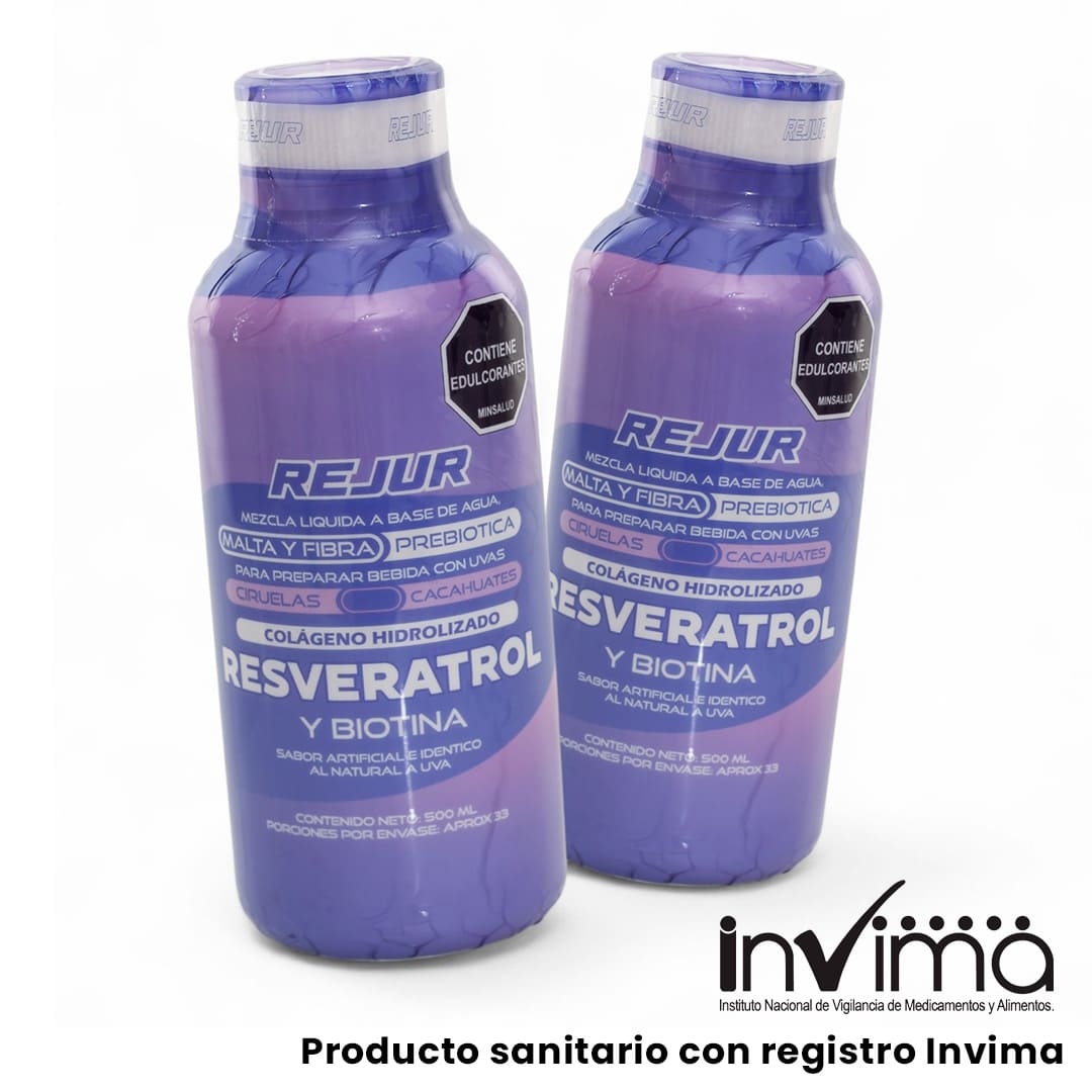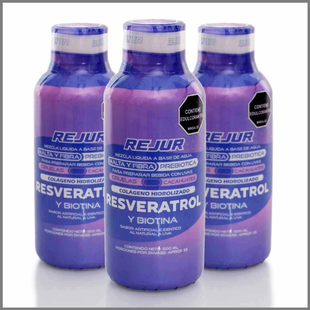 RESVERATROL, COLÁGENO Y BIOTINA en fórmula líquida, sin azúcar y lista para tomar.